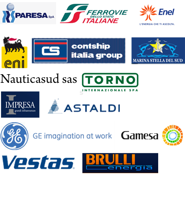 Tra i nostri clienti si segnalano aziende metalmeccaniche, marittime, società di costruzioni e di costruzione parchi eolici e bioedilizia e non solo. Di fianco un breve elenco indicativo.